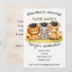 An adorable safari graduation design featuring a rosy-cheeked baby lion, gentle gray elephant, and sweet giraffe wearing graduation caps, sitting closely together on soft green grass with delicate flowers. Set against a dreamy safari landscape with a tree and mountain silhouette, this pastel illustration creates a warm and joyful atmosphere. Perfect for preschool or kindergarten graduation parties, this cute animal design captures the sweetness, friendship, and pride of your child’s special milestone.