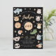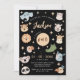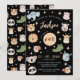 Cute Safari, Jungle, zoo animal faces 1st birthday boy black invitation with elephant, giraffe, koala, lion, zebra, crocodile, tiger, panda, birds, rhino & hippo.