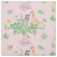 Cute animal safari design for your baby or toddler. Features a lush jungle themed swag and pink background with safari animals (elephant, leopard cub, lion cub, zebra and a giraffe) standing in the greenery and surrounded with greenery. Personalise with child's name and initial. Composite design by Holiday Hearts Designs (rights reserved).