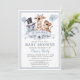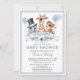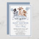 A banner in front of safari animals announce It's a Boy! A cute giraffe is in the centre, with an elephant in a top hat to the left and a monkey to the right. Blue balloons are on either side. A double blue frame surrounds the safari animals and baby shower details. If you need coordinating items, please message me. I'm Nelda and I'm always happy to help.