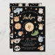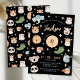 Cute Safari, Jungle, zoo animal faces birthday boy black invitation with elephant, giraffe, koala, lion, zebra, crocodile, tiger, panda, birds, rhino & hippo.