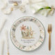 PAPER PLATES, BABY SHOWER PARTY DECOR | A little Lion King is on his way! Fall floral boy baby shower invitation with safari theme and cute jungle animals; lion cub, baby zebra, elephant and giraffe with foliage and fall coloured flowers. All artwork was painted in watercolor and graphically designed by Audrey Jeanne Roberts. Complete set available to coordinate. Copyright.
