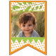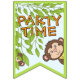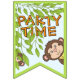 This is a Safari Cute little monkey Birthday Banner. This bunting has four different flags. One with our little monkey's picture, one with their age, one with the matching invitation scene with leaf vines, the little monkey with the age on his scarf and the fourth with a Birthday Greeting.
