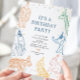 Make your child's birthday party unforgettable with these delightful safari animal birthday party invitation. Each animal is adorned with a cute party hat, enhancing the celebratory vibe. This invitation design perfectly captures the joy and excitement of a child's birthday party, making it an ideal to set a fun and cheerful tone for their celebration.