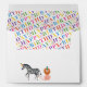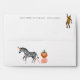 Three African safari party animals are ready to celebrate with colourful balloons and party hats on this decorative and custom birthday party invitation envelope complete with a handy pre-printed return address and a colourful printed liner pattern.