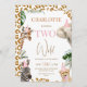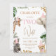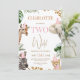 Cute safari themed two wild second birthday invitation featuring four safari animals, green foliage and a cheetah print. This two wild 2nd birthday invitation also features some pink party hats.