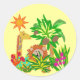 Colourful and fun can best describe this cute safari theme T-shirt, mug, mousepads, tote bags, stickers, and other safari items featuring tropical plants, a lion, giraffe, and sun!