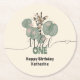 Safari Wild One Giraffe Animal Birthday Round Paper Coaster