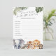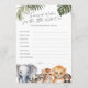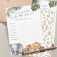 The Wild One Safari Animals Baby Boy Wishes Cards are the perfect addition to any baby shower, inviting guests to share their dreams and hopes for the new arrival. Each card showcases a charming watercolor design featuring beloved safari baby animals, including an elephant, lion, tiger, racoon, and chimpanzee, all nestled among tropical leaves for a touch of wilderness. Designed specifically for a boy's baby shower, these cards capture the spirit of adventure and the joy of welcoming a new life. As part of the Wild One Safari Animals collection, these wishes cards seamlessly blend with your themed celebration, making for a memorable and heartwarming experience for all.