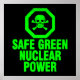 The slogan "Safe Green Nuclear Power" written in an original bold distressed headline style font along with an equally distressed stencilled poison symbol. You can't kill irony.
