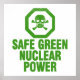 The slogan "Safe Green Nuclear Power" written in an original bold distressed headline style font along with an equally distressed stencilled poison symbol. You can't kill irony.