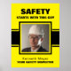 Yellow & black workplace safety poster with words: Safety starts with this guy, your safety inspector. Fully customisable. You can easily change the text and image.