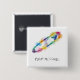 A rainbow safety pin badge, with space to put your own message / name / slogan underneath. The art is a hand-drawn pin, with messy paint blobs in bright colours.