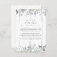 Pretty sage and lilac leaves tumble over an elegant silver frame enclosing your guest information details set in classic elegant text. Designed by Thisisnotme©