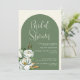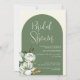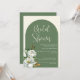 Beautiful watercolor illustration of a magnolia bouquet on a cream background and sage green arch for modern bridal showers.