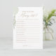 Have baby shower guests participate in a game of 'Who Knows Mummy Best' with this elegant game card, featuring gold typography and a sage green watercolor balloon.