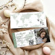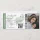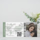 Elegant SAge green monogram boarding pass wedding ticket, a portrait of the engaged couple, a plane with a loop trail, and an easy editable save the date template. Remember to change the text on the back of the monogram.
