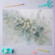 This soft sage botanical paper collage design features layered watercolor florals, delicate lace textures, and airy foliage arranged in an elegant, handcrafted composition. Inspired by vintage botanical journals and paper collage art, the design blends muted greens, creamy blooms, and subtle translucent overlays for a refined yet organic look.
