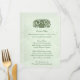 A classic illustration of flowers in a basket is highlighted on this card. The image is repeated as a watermark on the green coloured background. Use it as a menu or any printed piece you might need for your wedding, shower, engagement or corporate party. Customise it with your own menu or other information on the front and add your name(s) and event date on the back. Matching products available. Other colours also available.
