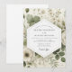 This elegant design features a soft, romantic aesthetic with a serene color palette of sage green, ivory, and cream. Delicate watercolor anemones and lush, verdant foliage are artistically painted across the composition. The overall impression is one of timeless grace, perfect for a classic botanical-themed union.