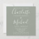 Featuring elegant signature style names, this stylish simple sage all-in-one wedding invitation can be personalised with all your special wedding day information on the reverse including your RSVP, accommodation, and additional details. Designed by Thisisnotme©