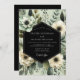 An elegant composition features creamy white blossoms with dark centres, nestled amongst lush sage green foliage and delicate botanical accents. The overall aesthetic evokes a rich, sophisticated, and natural beauty, perfect for a memorable occasion.