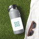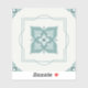 This design features a sage, green symmetrical flower motif surrounded by a simple line border against a cream colored background. This design is a repeat tiled pattern.
