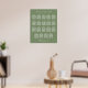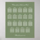 Sage Green 19 Table Wedding Seating Chart Poster, please personalise the names of the couple and the names of the guests along with any of the other text that you may wish to personalise. A stylish seating chart poster featuring elegant white text on a lovely sage green background.