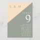 These sage green and cream minimalist, elegant wedding table numbers can be personalised with your information in modern typography. Designed by Thisisnotme©
