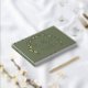 A beautiful gold foil wedding guestbook in a dark sage green with a floral element