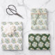 These fun and whimsical wrapping paper sheets features sage green and gold elegant flowers.