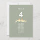Modern sage green wedding seating chart card featuring faux gold lovebirds illustration, clean white typography, and space for table number and personalised guest list. A stylish and practical addition to your reception that helps guests easily find their seats. Perfect for romantic, elegant, or botanical weddings. Part of a matching wedding suite in sage green and gold.