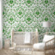 Sage Green and Green Damask Floral peel and stick Wallpaper