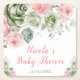 Sage Green and Pink Floral Baby Shower Square Paper Coaster