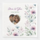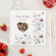 Beautiful personalised wedding dinner napkins. An elegant watercolor plum purple flowers with sage green and dusty blue foliage and floral design. Add your names photo to these napkins in the personalise area. These are beautiful for a wedding reception dinner or for a bridal shower or bachelorette party.