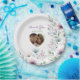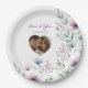 Beautiful personalised wedding dinner paper plates. An elegant watercolor plum purple flowers with sage green and dusty blue foliage and floral design. Add your names photo to these napkins in the personalise area. These are beautiful for a wedding reception dinner or for a bridal shower or bachelorette party.