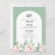 Sage Green Arch Blush Pink Floral Wedding Invitation. An adorable watercolor blush pink flower mixed with green foliage and a white and sage green arch. A simple and modern look for an elegant wedding. Works for spring and summer, but could even transition into autumn and fall even if you change the background colour! It even looks awesome with a black background. A mix of simple fonts make this both elegant, minimal and fun. You can change out all of the font colours as well as the background and arch colours (to change the arch, change the colours of the 'oval' and 'square' elements. On back is a simple initial monogram separated by greenery.