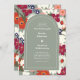 This boho chic floral is so on trend for the coming year. Colorful flowers of burgundy, burnt orange, sage green and navy are retro yet modern .... The QR code on the back makes it easy for your guests to get the details for your special day