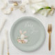 Sage Green Baby Love Script Baby Shower Paper Plate