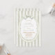 Featuring watercolor sage stripes, a leafy oval frame, and a delicate ribbon bow, this design is calm, minimalist, and beautifully gender-neutral.