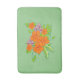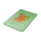 Sage green bath mat with orange flower,