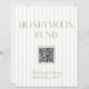A modern honeymoon fund sign featuring soft beige vertical stripes paired with refined sage green typography. Designed with a clean layout and integrated QR code, it offers a simple and elegant way for guests to contribute to your honeymoon.