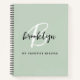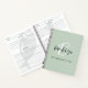 This personalised recipe notebook features a monogram and first name in modern black and white script on a trendy sage green background, with the additional text in black sans serif font below.