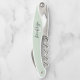 This distinctive personalised corkscrew features a sage green background. Customise it with their name in stylish black handwriting script over a white monogram initial.