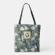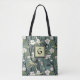 Sage Green Black Floral Japanese Style Monogram Tote Bag