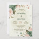 Beautiful romantic birthday invitations featuring sage green and blush pink flowers and some pretty leaves .