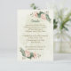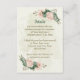 Beautiful romantic wedding reception details enclosure card featuring sage green and blush pink flowers and some pretty leaves .