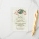 Beautiful romantic wedding reception details enclosure card featuring sage green and blush pink flowers and some pretty leaves .