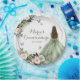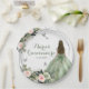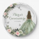 Sage Green Blush Pink Floral Princess XV Años Paper Plate