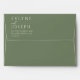 A minimalist boho calligraphy sage green wedding envelope. As you see it features white colour script . With plain sage green background. And customisable return address info.